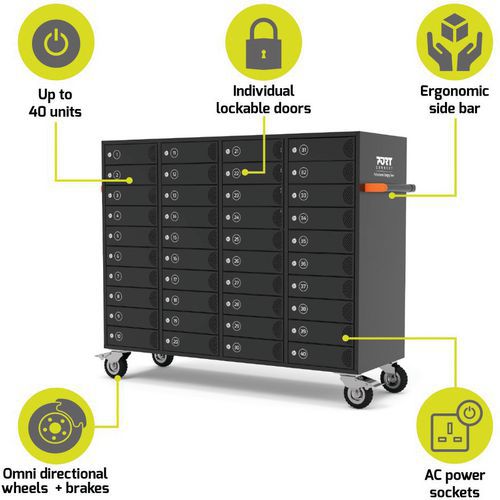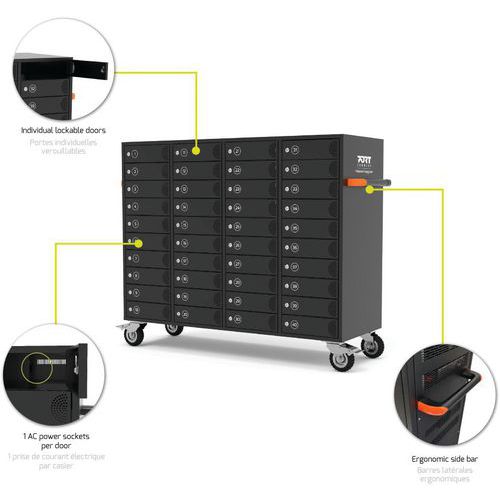 Oplaadkast met 40 stopcontacten voor notebook, Aantal vakjes: 40, Breedte: 142.6 cm, Diepte: 52 cm