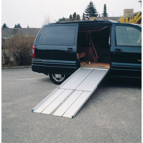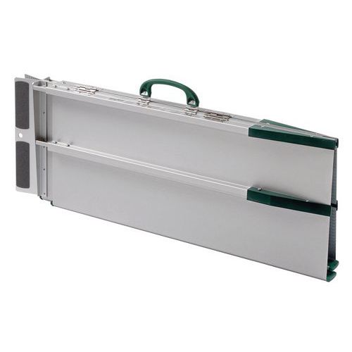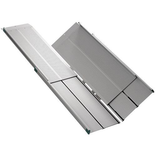 Telescopische oprijplaat Portefeuille Veilige en comfortabele doorgang. Heeft een antislipoppervlak. Gemakkelijk te hanteren. Onze Telescopische Oprijplaat Portefeuille is een uitschuifbare oprijplaat die grote hoogteverschillen kan overbruggen. Hij schuift in de lengte en vouwt in de breedte op om ruimte te besparen en hem gemakkelijk te kunnen verplaatsen en vervoeren. Gemaakt in de EU Toegankelijk voor mindervaliden