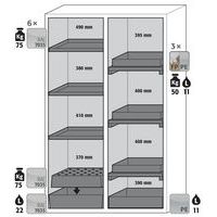 - Veiligheidskast met verschillende indelingsmogelijkheden van de vakken, zodat niet-compatibele producten apart opgeslagen kunnen worden.