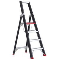 - Professionele dubbelzijdige trapladder van extreem licht aluminium met treden met kruisprofiel.