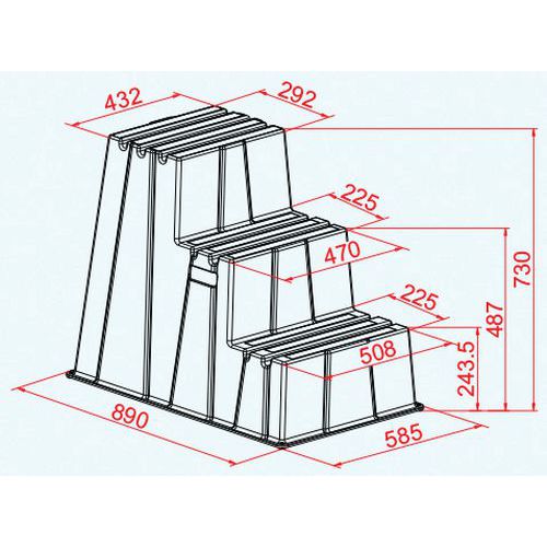Opstapkrukje antislip, Max. belasting: 230 kg, Platform hoogte: 730 mm, Aantal treden incl. platform: 3