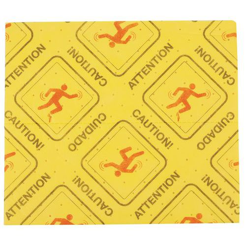Absorptiemiddel met waarschuwingsopdruk voor dubbele veiligheid. De dispenserdoos kan eenvoudig worden gemonteerd of worden opgehangen met behulp van de aanwezige montageopening. Maakt het mogelijk om vloeistoffen op te nemen en tegelijkertijd het risico van glijpartijen te voorkomen. De opvallende kleur en het veiligheidspictogram fungeren als waarschuwing. Groot absorptievermogen voor niet-chemische industriële vloeistoffen. Ideaal voor drukke zones waar het risico van uitglijden, struikelen en vallen bestaat