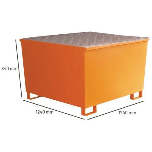 Opvangbak 1050 L, Vermogen (aantal vaten): 4, Roostermat: ja, Inhoud opvangbak: 1050 L, Kleur: Oranje Opvangbak 1050 L, Vermogen (aantal vaten): 4, Roostermat: ja, Inhoud opvangbak: 1050 L, Kleur: Oranje
