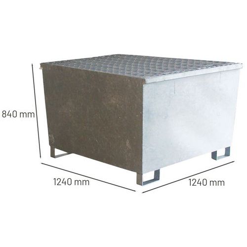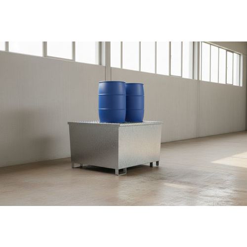 Opvangbak 1050 L, Vermogen (aantal vaten): 4, Roostermat: ja, Inhoud opvangbak: 1050 L, Kleur: Grijs Opvangbak 1050 L, Vermogen (aantal vaten): 4, Roostermat: ja, Inhoud opvangbak: 1050 L, Kleur: Grijs