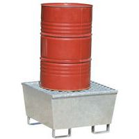 - Opvangbak met verwijderbaar rooster van staal, geschikt voor 100% van de inhoud van 1 vat van 220 l.