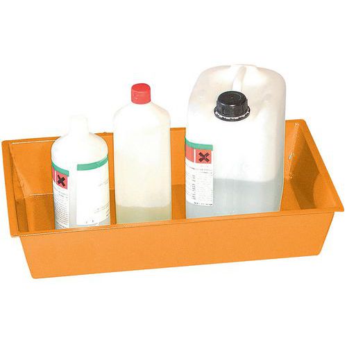 Voor het opslaan en behandelen van flessen, bussen of vaten die kunnen lekken