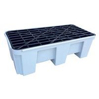 - Opvangpallet voor twee containers met rooster voor maximale retentie.