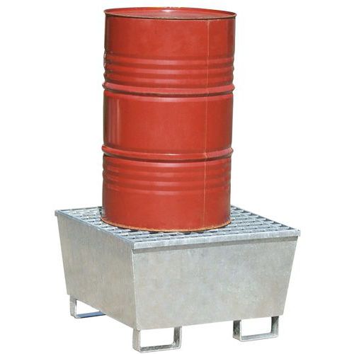 - Opvangbak met verwijderbaar rooster van staal, geschikt voor 100% van de inhoud van 1 vat van 220 l.