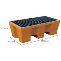 | Productnaam | Opvangpallet, Inhoud opvangbak: 240 L, Kleur: Oranje, Vermogen (aantal vaten): 2 |