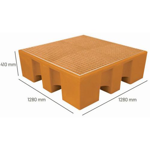 | Productnaam | Opvangpallet, Inhoud opvangbak: 450 L, Kleur: Oranje, Vermogen (aantal vaten): 4 |