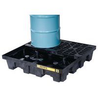 Opvangpallet voor beheersing van gemorste vloeistoffen. Voor bescherming van de vloer tegen vervuiling. Bestand tegen vele chemische producten, zuren en oplosmiddelen. Makkelijk schoon te maken dankzij het afneembare rooster van de opvangpallet. Duurzaam en 100% gerecycled materiaal met een beschermende laag tegen UV-stralen. Robuust ontwerp. Een gemakkelijke opslagmogelijkheid voor vloeistoffen. Lege opslag mogelijk.