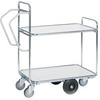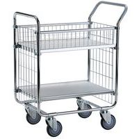 - Wagen met 2 plateaus, ideaal voor het verzamelen van onderdelen in smalle doorgangen in een winkel of magazijn.