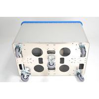 Regeling van de wielen E: 4 zwenkwielen, waarvan 2 met rem en een bokwiel, voor een goede wegligging met maximale wendbaarheid, remmen op zwenkwielen, volgens de Europese norm EN 1757:2022-08. Wiel-Ø: 125 mm, wielen met een minimale rolweerstand. Gaffel van gegalvaniseerd staal, wielframe van polyamide met loopvlak van polyurethaan en precisiekogellagers.