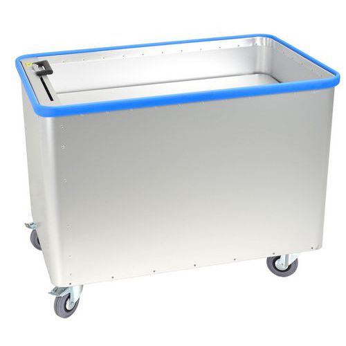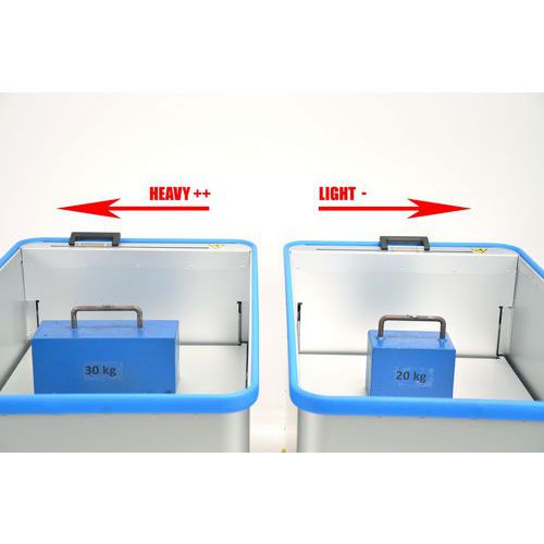 Orderverzamelwagen van geanodiseerd aluminium, licht, robuust en slijtagebestendig. Veerkracht afzonderlijk instelbaar afhankelijk van het product, ergonomische duwstang.