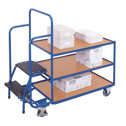 Orderpickwagen laag met 3 etages, Max. belasting: 250 kg, Totale hoogte: 1320 mm, Totale breedte: 1455 mm