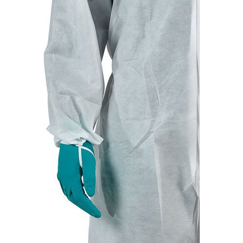 Bevat een barrière van niet-geweven SMMS-materiaal, ter bescherming tegen deeltjes, het verstuiven en spatten van niet-ontvlambare vloeistoffen.