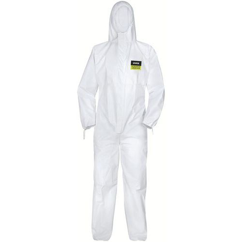 - Het Classic Light Uvex wegwerppak in wit (type 5/6) biedt bescherming tegen fijnstof en lichte chemicaliën.