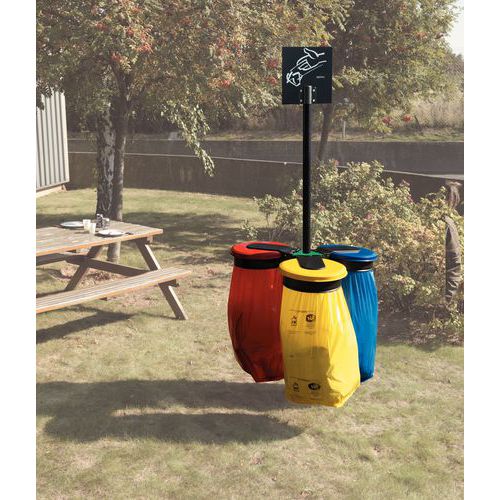 | Productnaam | Paal en sokkel voor zakhouder, Materiaal: Metaal, Kleur: Grijs, Hoogte: 90 cm, Model: 3 bakken |