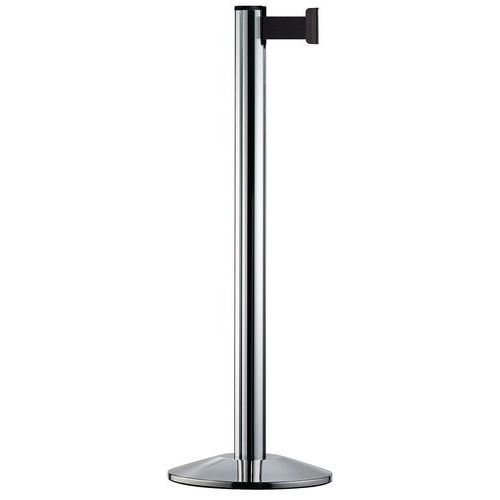 Paal met uittrekbare band, ideaal voor het duidelijk aangeven van wachtrijen of het afsluiten van toegang bij evenementen. Verzwaarde voet voor optimale stabiliteit. Kan binnen en buiten worden gebruikt.