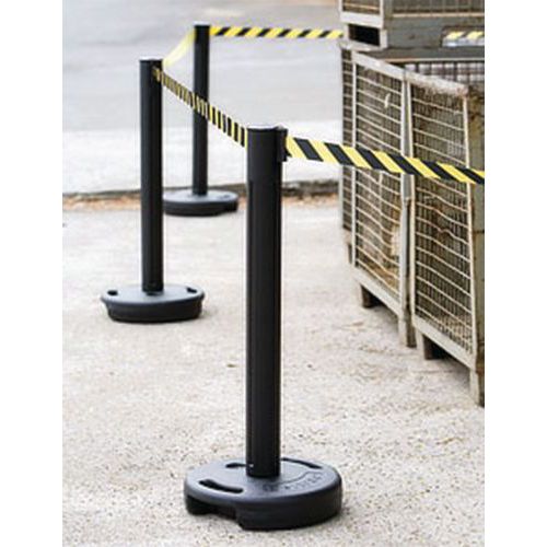 Paal met band Beltrac, Gebruiksomgeving: Buitenterrein, Band kleur: Zwart/geel, Band lengte: 3.70 m Paal met band Beltrac, Gebruiksomgeving: Buitenterrein, Band kleur: Zwart/geel, Band lengte: 3.70 m
