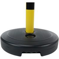 Voet te verzwaren tot 9 kg met zand of grind. Paal met 1 startpunt en 3 mogelijke eindpunten voor band. Geschikt voor buitengebruik.