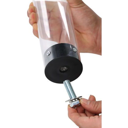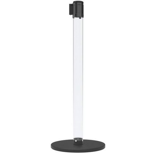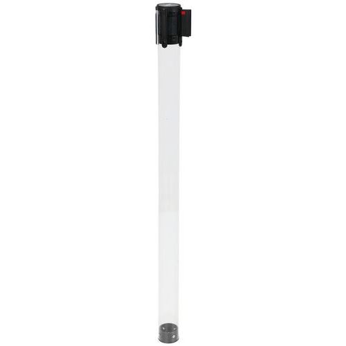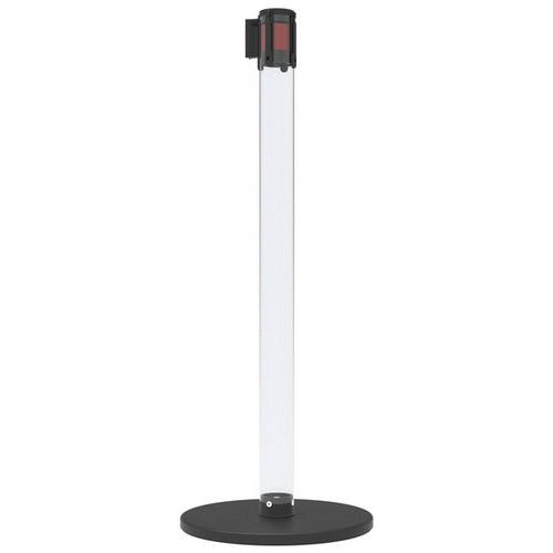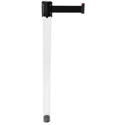 Paal met band en transparante buis. Praktische en gebruiksvriendelijke oplossing. Dankzij de 4 bevestigingspunten kunnen 4 banden worden aangesloten. Transparante paal voor meer discretie.