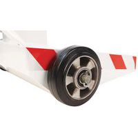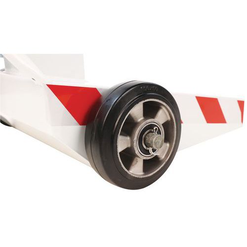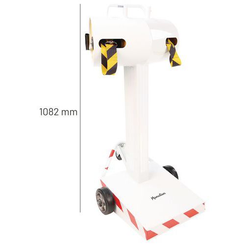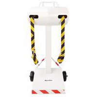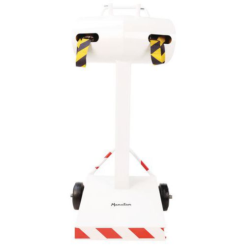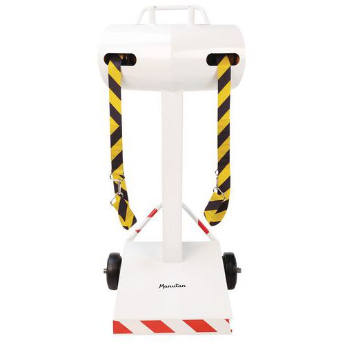 Optimaliseer de veiligheid en organisatie van uw professionele binnen- en buitenruimtes met de paal met dubbele band. Deze robuuste en veelzijdige paal met uittrekbare band is de ideale oplossing voor het afbakenen van zones, het leiden van mensenstromen of het aangeven van tijdelijke gevaren. Dubbele band van 28 meter voor een groot bereik om grote ruimtes te beveiligen of om effectief rijstroken te maken. Optimaal zicht: de rood-witte banden met hoge zichtbaarheid zorgen voor duidelijke en onmiddellijke signalering. De band is gemaakt van 48 mm breed polyester en ontworpen om bestand te zijn tegen intensief gebruik. Sokkel met Ø 55 cm garandeert een uitstekende stabiliteit.