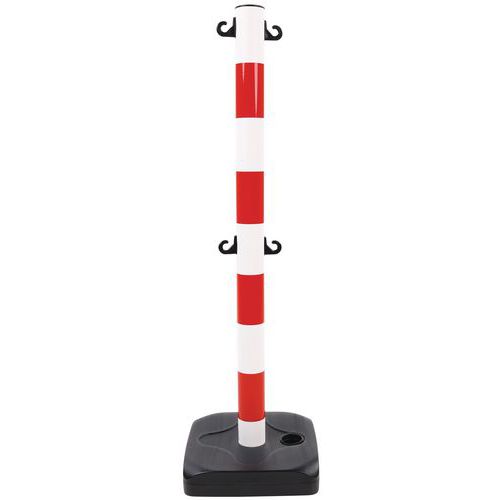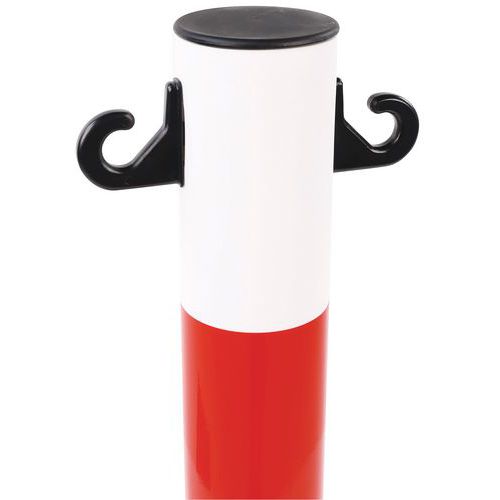 Paal voor ketting zeer robuust voorzien van 4 haken op 2 niveaus voor het bevestigen van kettingen. Zeer praktisch voor het aangeven van een tijdelijke verbod. Voorzien van een zeer stabiele vierkante sokkel.