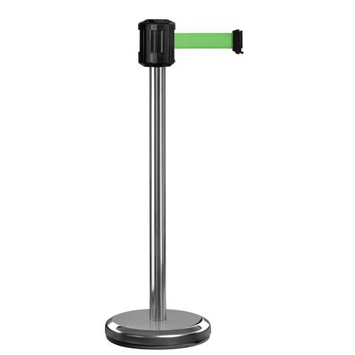 Paal voor buiten met band, om publiek de weg te wijzen en verkeer te regelen. De paal heeft een verzwaarde basis en een 5 cm brede band met een lengte van 2 m. De band is voorzien van een rem- en antipanieksysteem, waardoor de band in een noodsituatie automatisch kan worden losgetrokken. De kop van de paal heeft plek voor 3 verschillende banden en is voorzien van een gat met schroefdraad voor het bevestigen van een informatiebord. Geschikt voor buitengebruik dankzij de waterdichte behuizing.