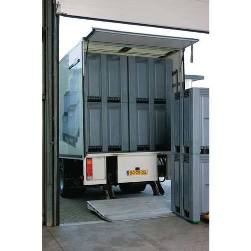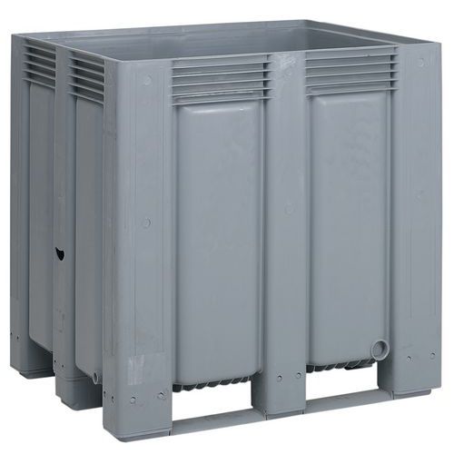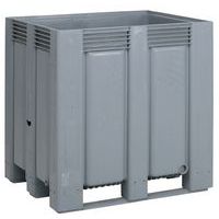 Grijze palletkist van waterdichte kunststof met 3 verstevigde sleden. Dichte bodem en wanden. Met afgeronde zijwanden voor 12 % meer volume dan standaard palletkisten. Eenvoudig te verplaatsen met een pallettruck. Het laadvermogen is getest bij een temperatuur van 23 ºC. Maximale gestapelde belasting voor het model van 760 l: 4800 kg. Maximale gestapelde belasting voor het model van 1100 l: 4000 kg. Maximale gestapelde belasting voor het model van 1100 l: 750 kg.