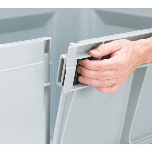 - Met zijklep zodat de goederen ook in stapel te bereiken zijn.