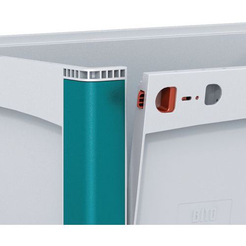 Zeer lichte, robuuste kunststof palletkist. Dichte wanden. Opening van de korte zijde voor eenvoudige toegang tot de inhoud. Op sleden voor eenvoudig vervoer door vorkheftruck. Stevige en stabiele transportoplossing.