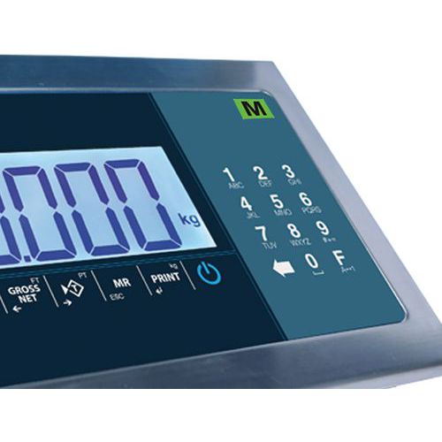 | Functies | Weging, tarreren, tellen, handmatig of automatisch totaliseren, directe toetsdruk van het tarragewicht, geheugen van 5 tarragewichten, controle +/- met visuele indicatie (oranje-groen-rood), RS232-uitgang. |