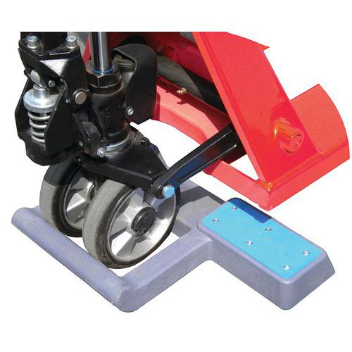 | Productnaam | Pallettruck stopper, Hoogte: 8 cm, Gewicht: 3.6 kg, Breedte: 390 mm, Lengte: 690 mm, Kleur: Blauw/grijs |