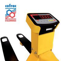 | Productnaam | Palletwagen met weegsysteem, COFRAC-gecertificeerd, Max. belasting: 2000 kg, Lengte vork: 1160 mm |