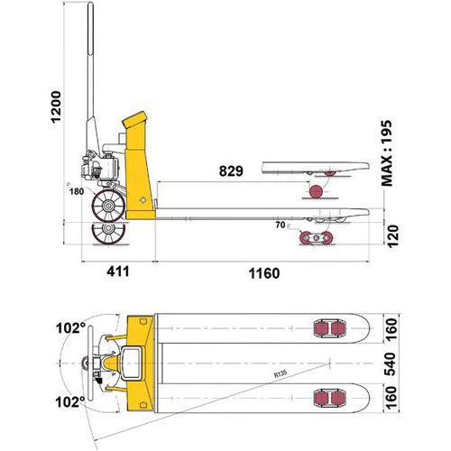 | Productnaam | Palletwagen met weegsysteem, Max. belasting: 2000 kg, Lengte vork: 1160 mm, Type nr.: Tran-serenite |