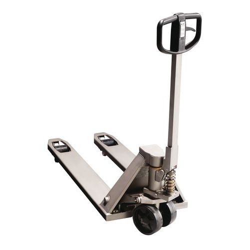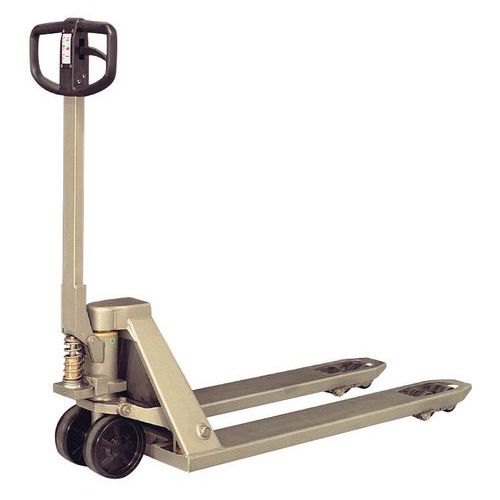 | Productnaam | Palletwagen rvs, Max. belasting: 2000 kg, Lengte vork: 1000 mm, Type vorkwiel: Enkel |