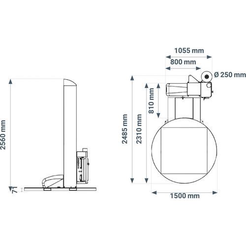 | Productnaam | Palletwikkelmachine met U-vormige plaat, Max. belasting: 1650 kg, Max. hoogte spoel: 2200 mm |
