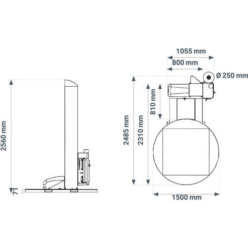 | Productnaam | Palletwikkelmachine Premium met U-vormig platform, Max. belasting: 2000 kg, Max. hoogte spoel: 2200 mm |