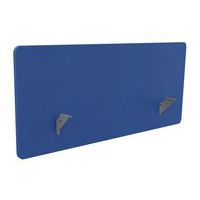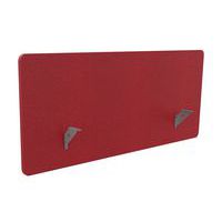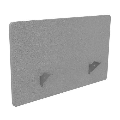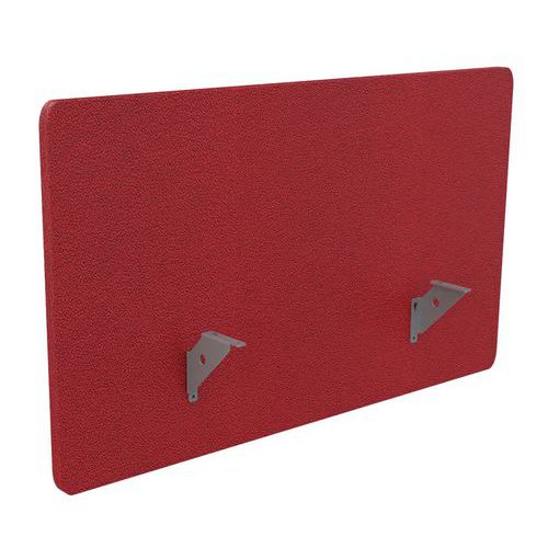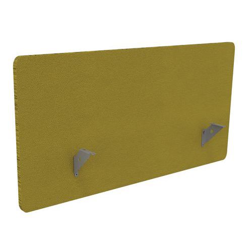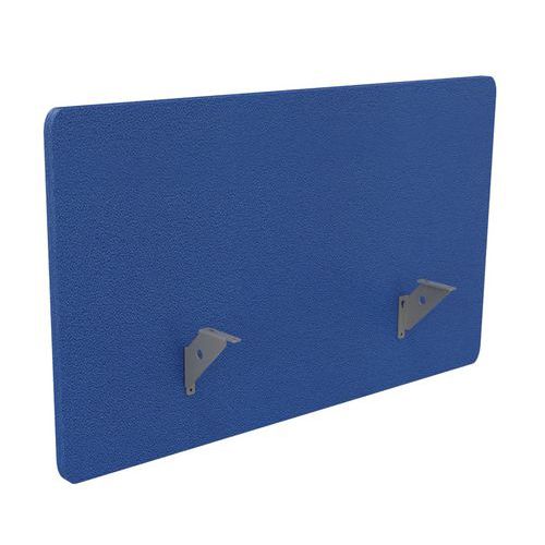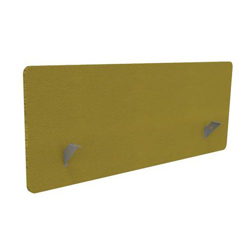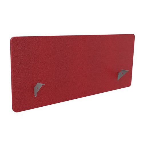 2 MDF panelen met een dikte van 10 mm met afgeronde hoeken en coatings van melamineschuim met geluidsisolatie en stof van 100% Trévira CS, brandwerend M1. 2 metalen bevestigingshaken met aluminium epoxy-coating, voor bevestiging onder het bureaublad.