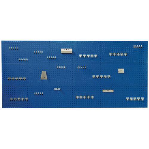 | Productnaam | Paneel en haken Perfo® 80, Kleur: Blauw, Breedte paneel: 1500 mm, Hoogte paneel: 457 mm, Aantal panelen: 6 |