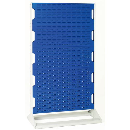 Breedte 1000 mm, diepte 550 mm Hoogte van vaste uitvoering: 1125, 1450 en 1775 mm De verrijdbare versie is voorzien van wielen met een diameter van 100 mm Enkel- of dubbelzijdig Verkrijgbaar als set met bakken of kaal om naar eigen wens in te richten Afgewerkt met epoxylak Frame in grijs RAL 7035 en panelen in blauw 5010 Optionele dubbelzijdige onderste bak voor alle modellen