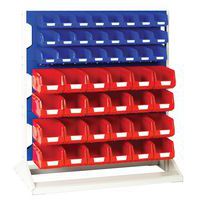 Breedte 1000 mm, diepte 550 mm Hoogte van vaste uitvoering: 1125, 1450 en 1775 mm De verrijdbare versie is voorzien van wielen met een diameter van 100 mm Enkel- of dubbelzijdig Verkrijgbaar als set met bakken of kaal om naar eigen wens in te richten Afgewerkt met epoxylak Frame in grijs RAL 7035 en panelen in blauw 5010 Optionele dubbelzijdige onderste bak voor alle modellen