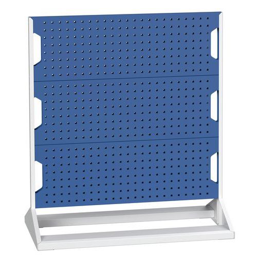 Rekken verkrijgbaar in vaste of mobiele versie, uit te rusten met Perfo accessoires. Deze racks zijn ontworpen voor grote opslagcapaciteit. Hiermee kunt u het gereedschap altijd bij de hand hebben voor een betere productiviteit. Breedte 1000 mm, diepte 550 mm Hoogtes vaste uitvoering: 1125 mm, 1450 mm en 1775 mm Hoogte mobiele versie: 1250 mm met wielen met een diameter van 100 mm Enkel- of dubbelzijdig Verkrijgbaar in kit met accessoires of naakten om uit te rusten volgens uw behoeften Epoxylakafwerking Frame kleur grijs RAL 7035 en blauwe panelen 5010 Optionele onderste bak voor alle dubbelzijdige modellen