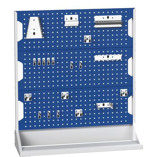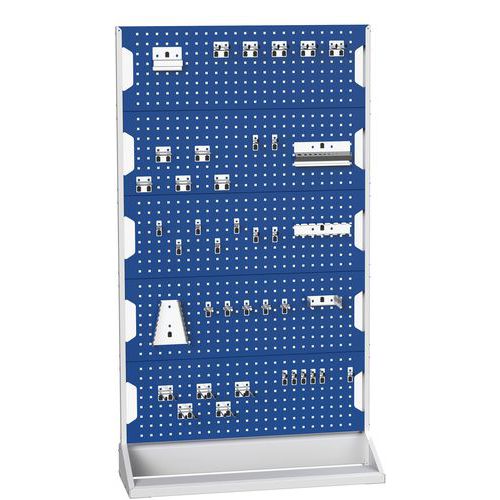 Rekken verkrijgbaar in vaste of mobiele versie, uit te rusten met Perfo accessoires. Deze racks zijn ontworpen voor grote opslagcapaciteit. Hiermee kunt u het gereedschap altijd bij de hand hebben voor een betere productiviteit. Breedte 1000 mm, diepte 550 mm Hoogtes vaste uitvoering: 1125 mm, 1450 mm en 1775 mm Hoogte mobiele versie: 1250 mm met wielen met een diameter van 100 mm Enkel- of dubbelzijdig Verkrijgbaar in kit met accessoires of naakten om uit te rusten volgens uw behoeften Epoxylakafwerking Frame kleur grijs RAL 7035 en blauwe panelen 5010 Optionele onderste bak voor alle dubbelzijdige modellen