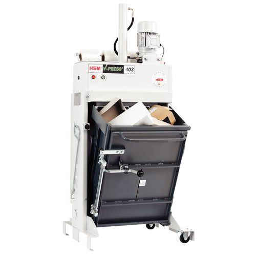 - Robuuste en stabiele verticale afvalpers. Moderne bediening met microprocessor. Touchscreen met keuze van programma's (karton, kunststof folie enz.). Verdraaiing helling persplaat bediend per HSM TCS-systeem. Dubbele klapdeur met hendelsluiting. Beperkte vloeroppervlakte nodig. Enkelfasig model.