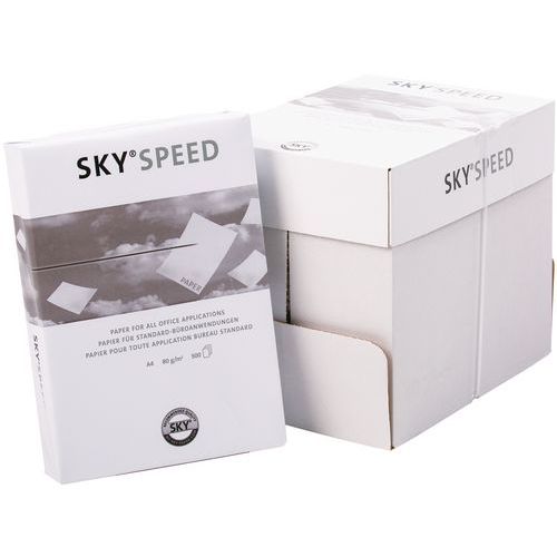 | Productnaam | Papier Skyspeed Regular, Gramsgewicht: 80 g/m², Aantal vellen/riem: 500, Kleur: Wit, Gerecycled: nee |