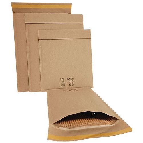 Luchtkussenenvelop Jovimail Kraft. Optimale demping. Luchtkussenenvelop van kraftpapier met geperforeerd in honingraatmotief. 2 lagen bruin kraftpapier (2 x 80 gr/m²). 5 afwerkingen beschikbaar.
