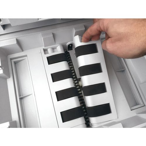 - Papiervernietiger met een automatisch toevoersysteem voor bundels tot 300 vellen.
