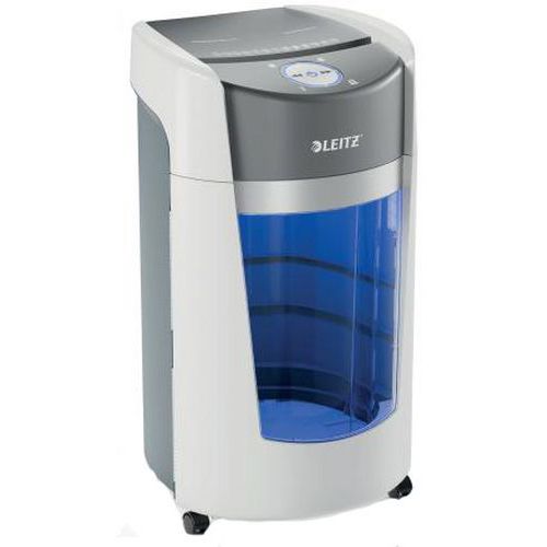 Het strakke witte ontwerp omvat een geïntegreerd blauw ledlicht en vier wielen voor eenvoudigere verplaatsing. Hierdoor is deze versnipperaar de perfecte keuze voor moderne kantoren, die hun vertrouwelijke gegevens op bewuste wijze beschermen.